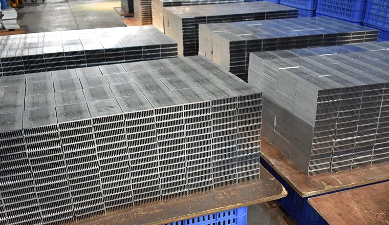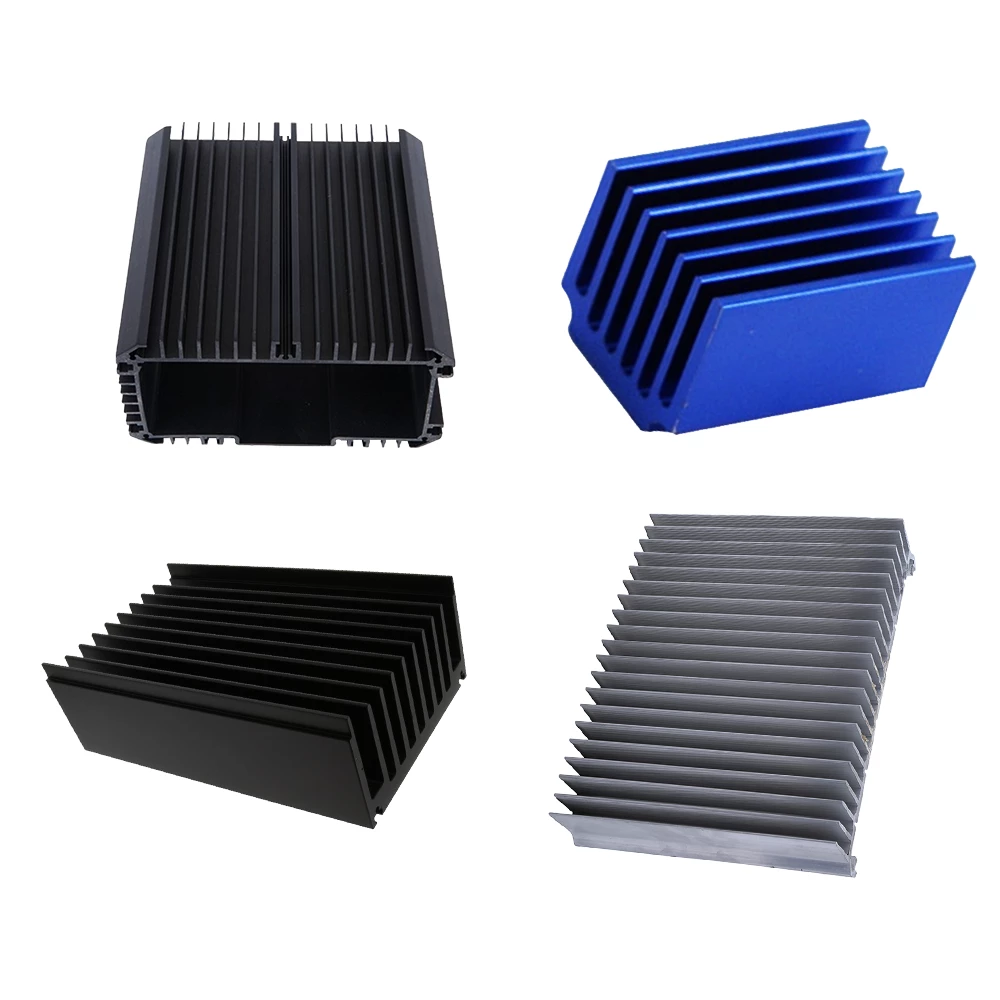We make customized aluminum heat sinks from Aluminum extrusion technology and it works this way: firstly the aluminum ingot will be heated at high temperature to about 520~540℃, and its liquid will flow through the extrusion die with grooves under high pressure to make the preliminary heat sink, and finally the preliminary heat sinks will be cut to its length.